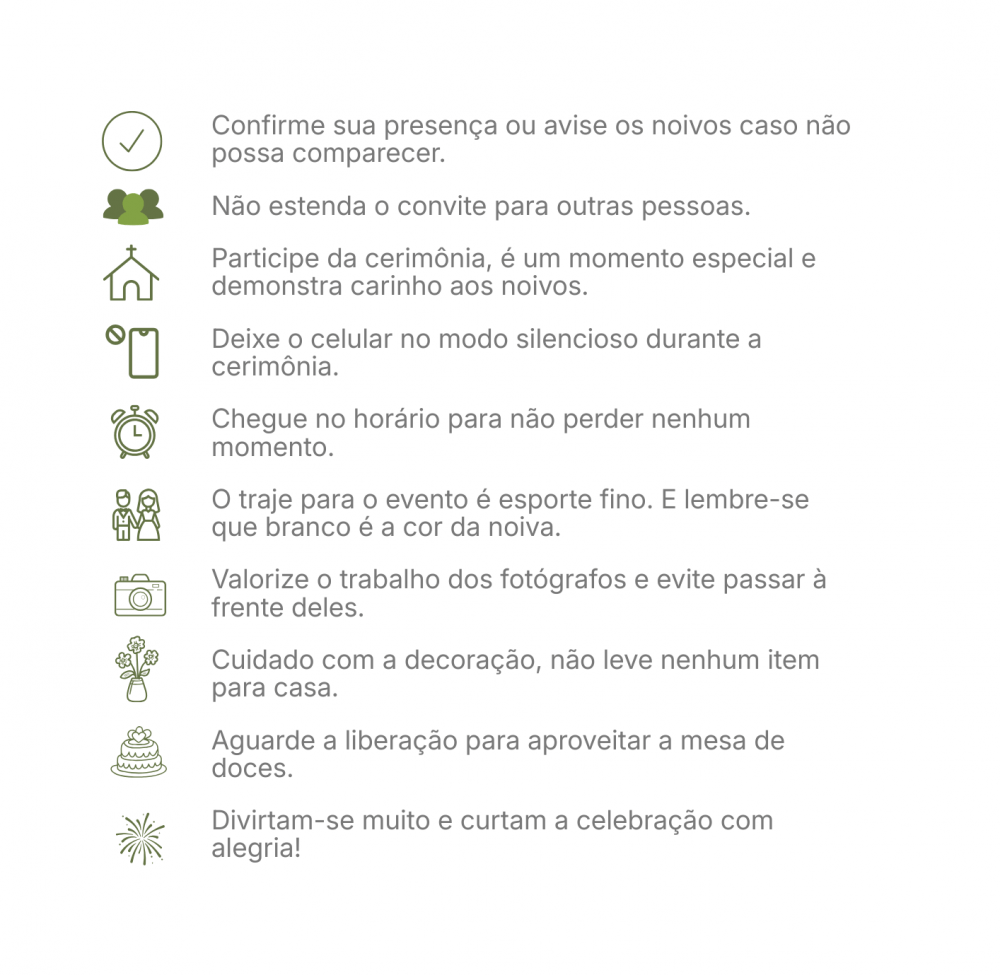 Para isso todos os detalhes da cerimônia e recepção estão abaixo, é muito importante também confirmar sua presença, é através dela que vamos separar um lugar super especial para você na nossa festa. Para isto clique no menu “Confirme sua Presença” e preencha os dados necessários. Para nos presentear, fiquem a vontade para escolher qualquer item da Lista de Presentes.